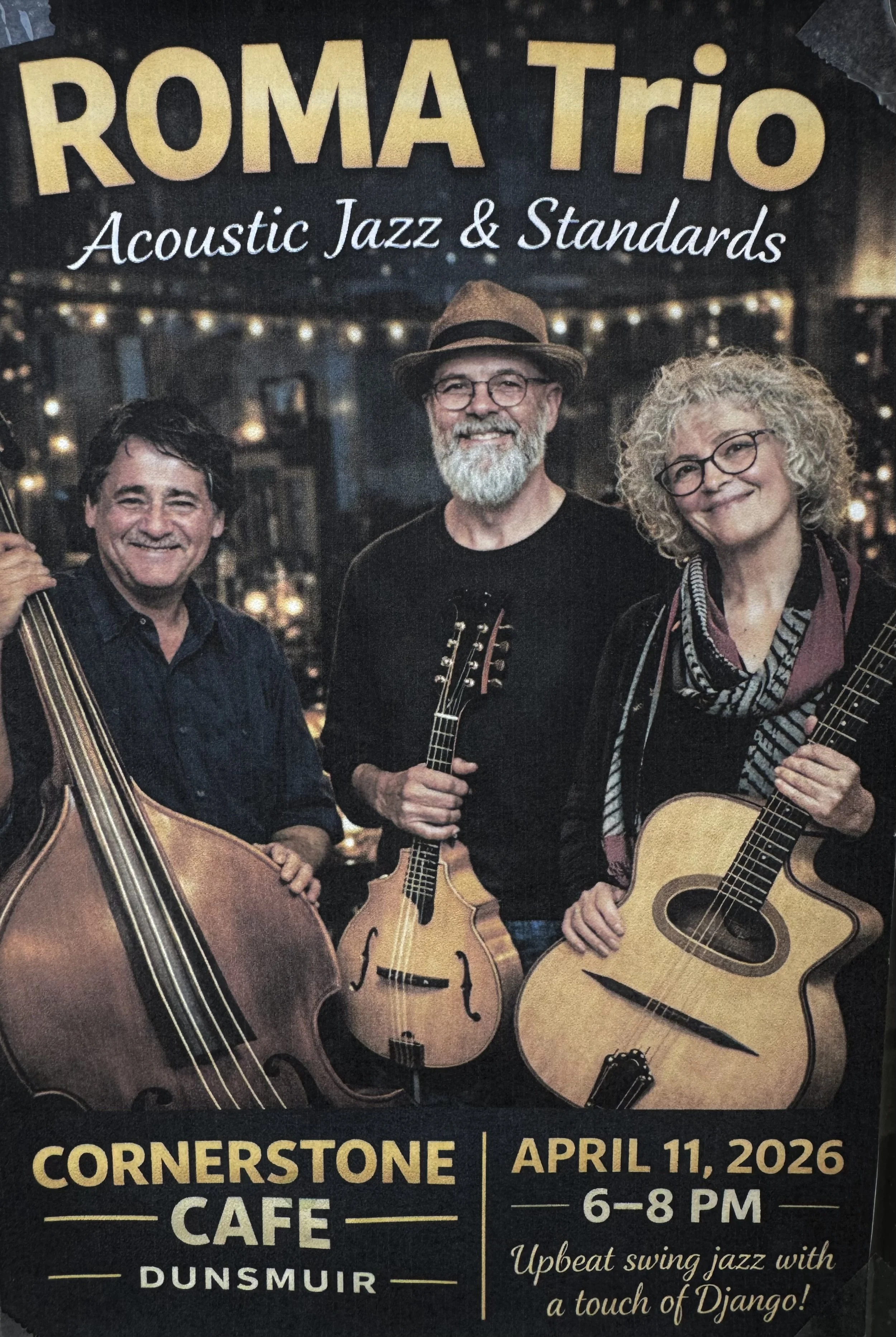 Cornerstone Café: Live music with The Roma Trio 6-8pm, new dinner menu served 5-8pm.