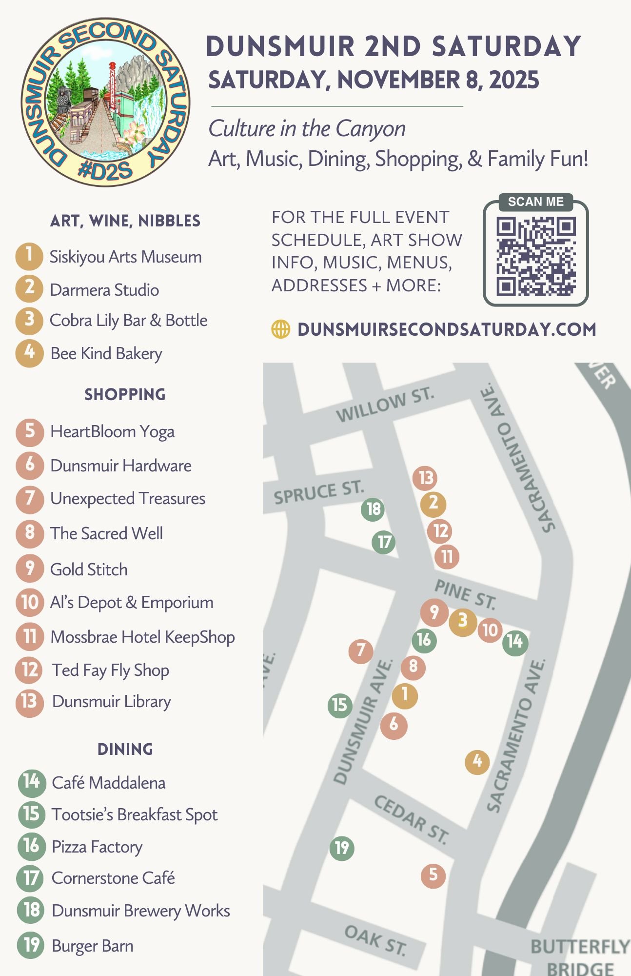 Every Second Saturday, Dunsmuir offers the very best of the art, food, shopping, and culture of the Mt Shasta region. Whether you’re camping or renting a home, with or without children, staying for a weekend or staying for the summer, Dunsmuir has something special for you. Come for a visit, and your heart will always call you back.
