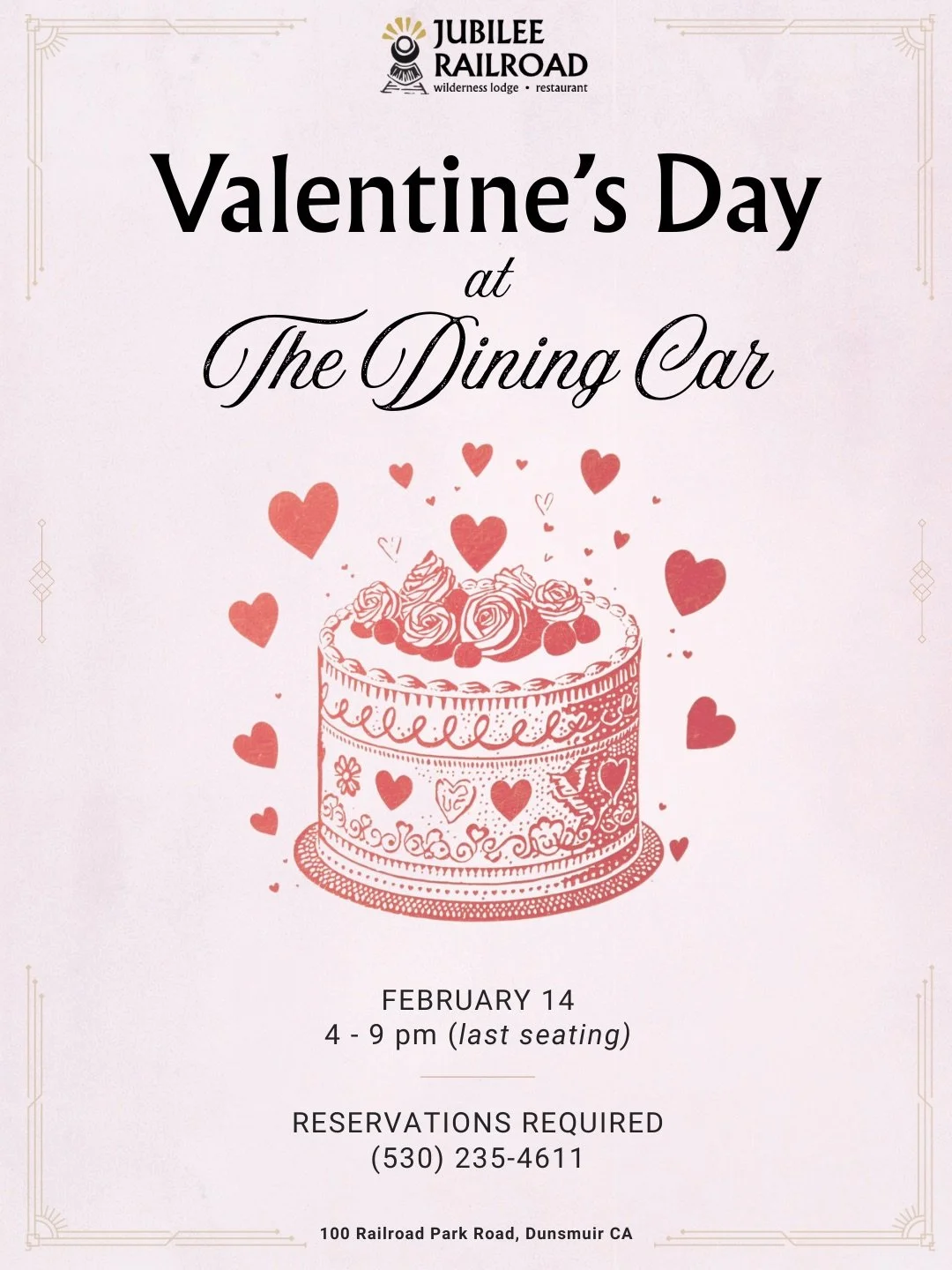 Jubilee Railroad Dining Car: Regional & organic upscale dinner menu & full bar with delightful seasonal cocktails, 4-8pm.
